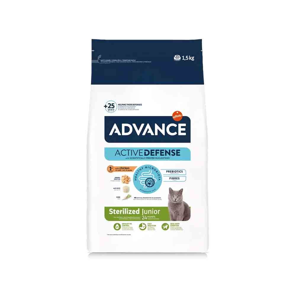 Advance Sterilized Kitten - ესპანური სუპერ-პრემიუმ კლასის მშრალი საკვები სტერილიზებული კნუტებისთვის. საკვების მთავარი ინგრედიენტები ქათმის ხორცი და ბრინჯია, შემადგენლობა მორგებულია სტერილიზებული კატების საჭიროებებს. ცხიმის დაბალი პროცენტული მაჩვენებელი უზრუნველყოფს კატის ფორმის შენარჩუნებას. საკვების pH კონტროლი უზრუნველყოფს კატების დაცვას შარდსასქესო დაავადებების წარმოქმნისგან.