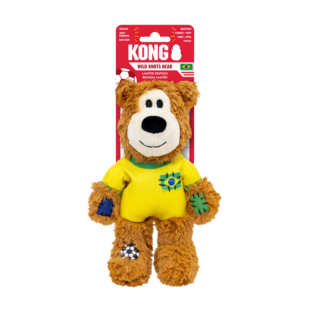 KONG Wild Knots Sport BRA დათვი (საშუალო ზომა) – ბრაზილია – გამძლე და გასართობი სათამაშო პატარა და საშუალო ჯიშის ძაღლებისთვის, რომელსაც აქვს შიდა კვანძოვანი თოკის ჩონჩხი, რაც ეხმარება ძაღლის ბუნებრივი ინსტინქტების დაკმაყოფილებას და უზრუნველყოფს ხანგრძლივ გართობას. სათამაშოს დიზაინი შთაგონებულია ფეხბურთის მსოფლიო ჩემპიონატით და შესრულებულია ბრაზილიის საგულშემატკივრო სტილში – დათვს აცვია ბრაზილიის ეროვნული ნაკრების ფორმა, რაც მას კიდევ უფრო მიმზიდველსა და გამორჩეულს ხდის. თუ ბრაზილიის ნაკრებს გულშემატკივრობ, ეს სათამაშო იდეალური არჩევანია – შეიძინე და შენს ცუგოსთან ერთად უგულშემატკივრე ბრაზილიას!