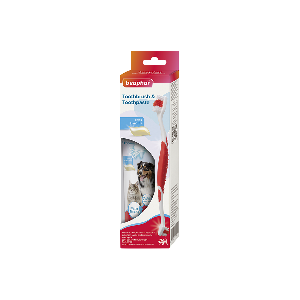 კბილის ჯაგრისი და პასტა ძაღლისთვის და კატისთვის Beaphar Tooth Brush and paste 100 გრ