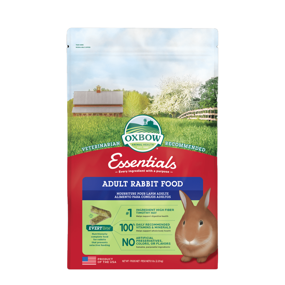Oxbow Essentials Adult Rabbit Food - კურდღლის საკვები. დამზადებულია პრემიუმ ხარისხის ინგრედიენტებით და სპეციალურად შემუშავებულია თქვენი შინაური ცხოველის ჯანსაღი და აქტიური ცხოვრების მხარდასაჭერად. მისი მთავარი შემადგენელია მაღალი ბოჭკოვანი Oxbow Western Timothy-ის თივა, რომელიც ხელს უწყობს ჯანსაღ მონელებას, ხოლო დამატებული ანტიოქსიდანტები და პრობიოტიკები აძლიერებს იმუნურ სისტემას და საერთო ჯანმრთელობას. საკვები უზრუნველყოფს კურდღლისთვის აუცილებელი ვიტამინებისა და მინერალების დღიური ნორმის 100%-ს და არ შეიცავს ხელოვნურ კონსერვანტებს, საღებავებსა და არომატიზატორებს, რაც მას ხდის უსაფრთხო და სრულფასოვან ყოველდღიურ კვებად.